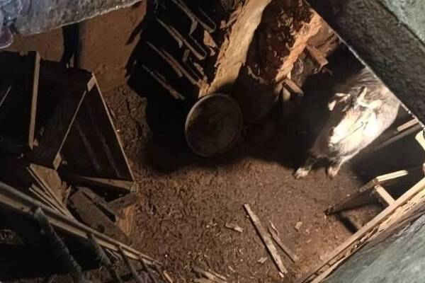 Инцидент произошёл в частном секторе: хозяева открыли яму для проветривания с наступлением тёплой погоды и прикрыли её досками, чтобы избежать случайного падения. Однако коза, гулявшая по двору, обнаружила щель между досками и провалилась внутрь.
